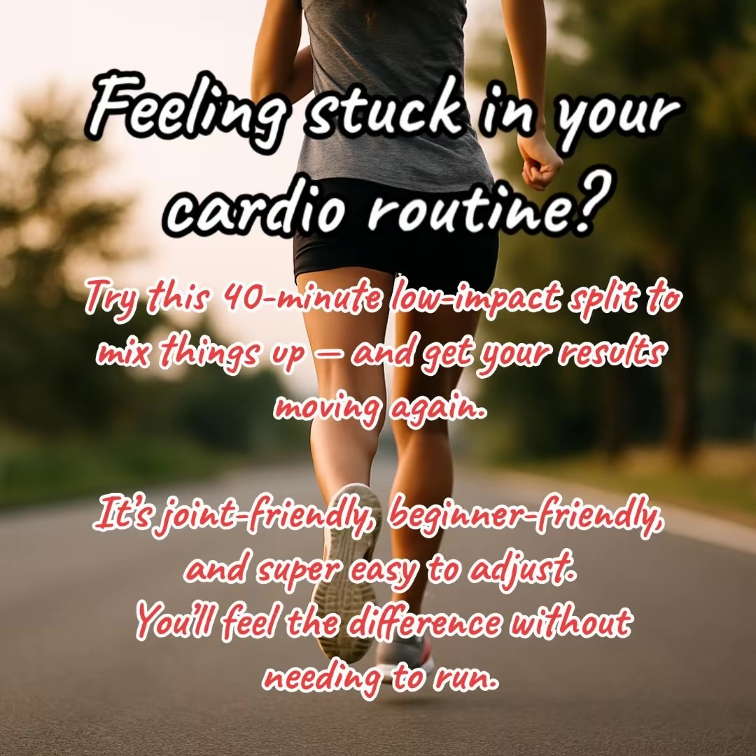 This 40-minute cardio split has been one of my go-to ways to keep things fresh, low impact, and still super effective. It's great for all fitness levels, easy on the joints, and doesn’t require you to run (because let’s be honest — not everyone’s a runner 😅).