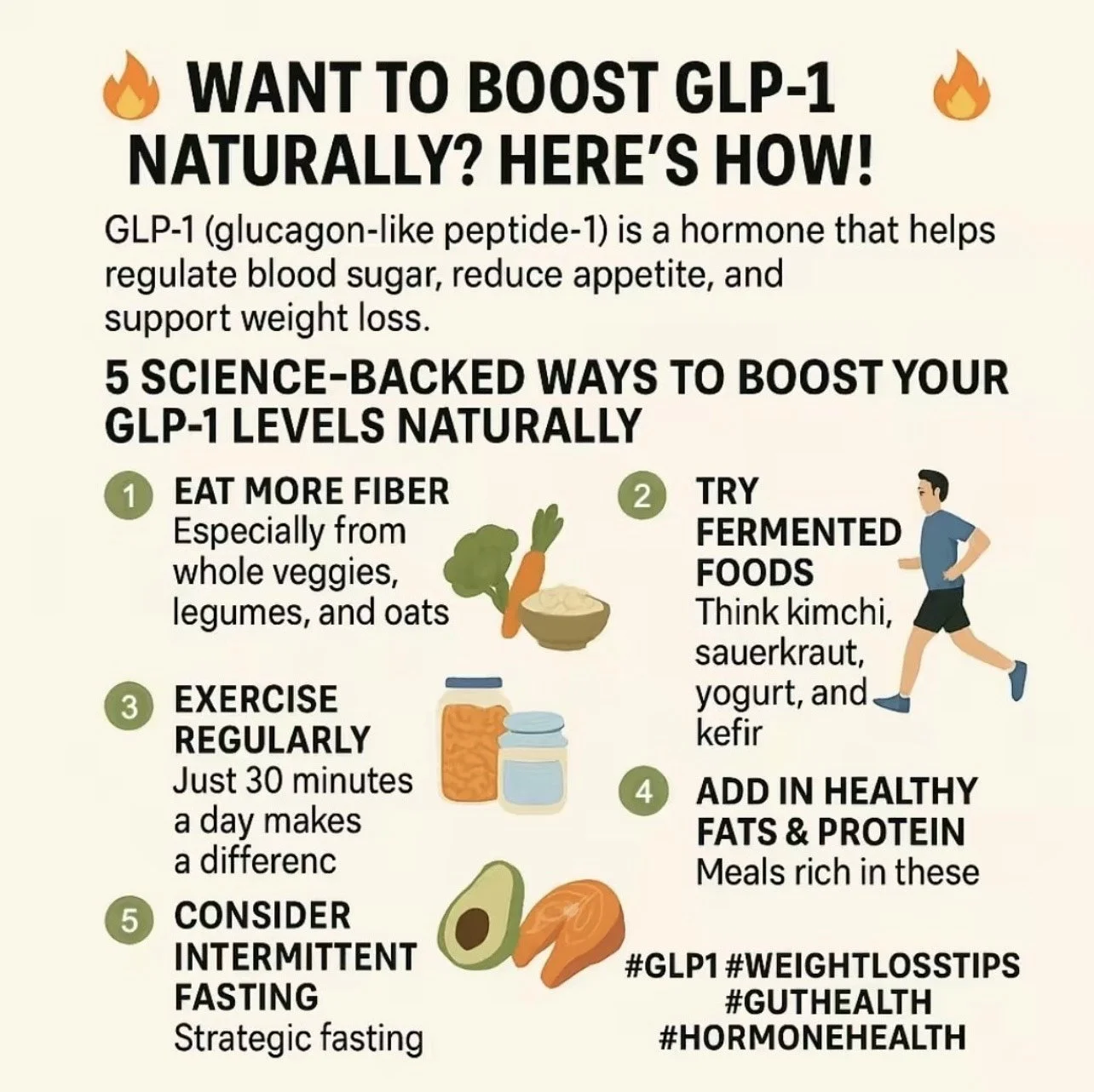 GLP-1 might sound super technical, but it’s actually a hormone that helps with blood sugar, cravings, and energy. Here are five simple things I do to support it — no extremes, just real-life habits that actually work.